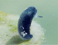 | 和名(Japanese) : アオクシエラウミウシ 学名(Name) : Doriopsis Pecten (Collingwood, 1881) ポイント(Point) : Eelgrass Beds 深度(Depth) : 1.5m 体長(Length) : 5mm 撮影日(Date) : 01/04/2006 撮影者(Photo/Copyright) : GON コメント(Comment) : 緑藻が群生している浅場の砂地にある、石の裏で見つかりますが、石に張り付いていて動かないと触角も鞘の中から出ていないので、餌である青いスポンジに溶け込んで非常にわかりにくいです。スポンジの色によって体色も微妙に変化する模様。 また、2次鰓が櫛型になっているのが特徴。もし2次鰓が出ていなくとも、光で透かすと格納されているのが確認出来る筈。2次鰓を出す時は、蓋との隙間からスライドさせます。 |