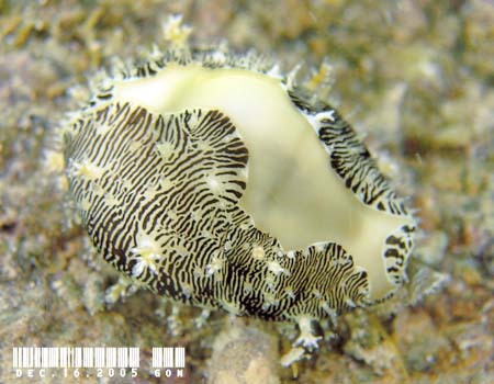 和名(Japanese) : キイロダカラ 学名(Name) : Erosaria moneta (Schilder & Schilder, 1933) 通称(Common name) : Money Cowry ポイント(Point) : アマモ場 (Eelgrass Beds, Garapan) 深度(Depth) : 1.5m 体長(Length) : 撮影日(Date) : 12/16/2005 撮影者(Photo/Copyright) : GON コメント(Comment) : 今まで一緒にしていた、ハナビラダカラとキイロダカラを分けました。Sep.2006 |