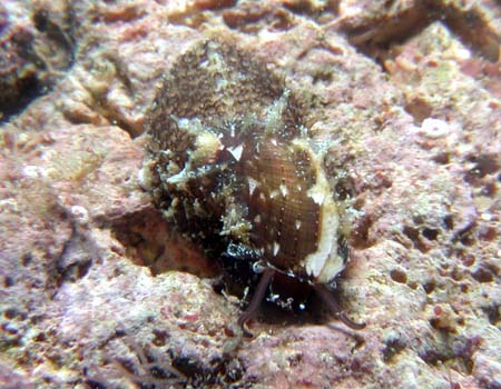 | 和名(Japanese) : スカシガイの仲間 学名(Name) : Keyhole limpet ポイント(Point) : Laulau Beach 深度(Depth) : - 体長(Length) : - 撮影日(Date) : 02/14/2006 撮影者(Photo/Copyright) : GON |