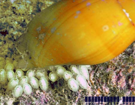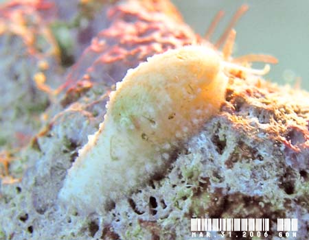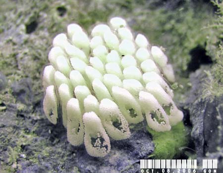 | 和名(Japanese) : ? 学名(Name) : ? ポイント(Point) : Laulau Beach 深度(Depth) : -m 体長(Length) : -mm 撮影日(Date) : 10/08/2006 撮影者(Photo/Copyright) : Gon コメント(Comment) : 貝の卵? |