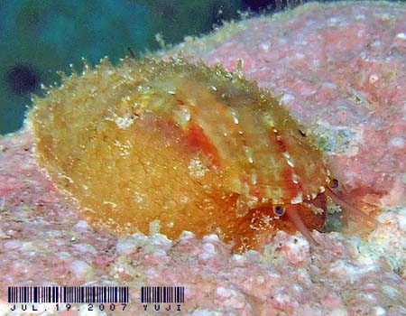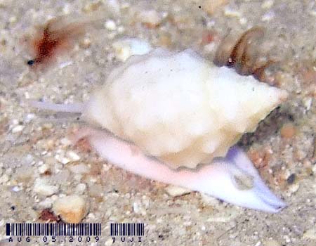 | 和名(Japanese) : ? 学名(Name) : ? ポイント(Point) : ラウラウビーチ (LauLau Beach) 深度(Depth) : 6m 体長(Length) : 20mm 撮影日(Date) : 07/19/2007 撮影者(Photo/Copyright) : Yuji コメント(Comment) : サンゴ礫の下にて。 かなりの勢いで動いていました。スカシガイの仲間かな、とは思うものの、後日調べて分類を試みる予定。 |